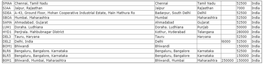 印度亚马逊仓库代码地址邮编一览表