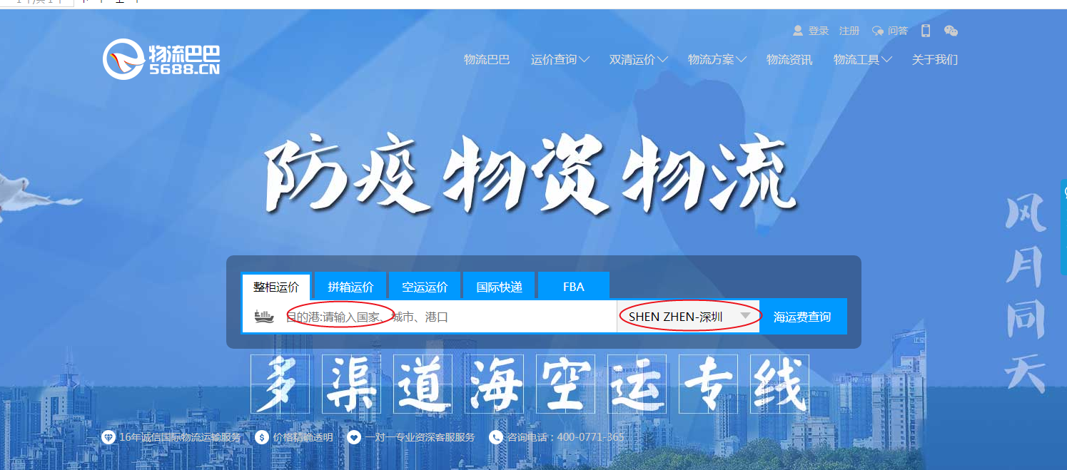 输入目的港国家/港口(中英文); 选择起运港. 即可查询到相对应的海运费.